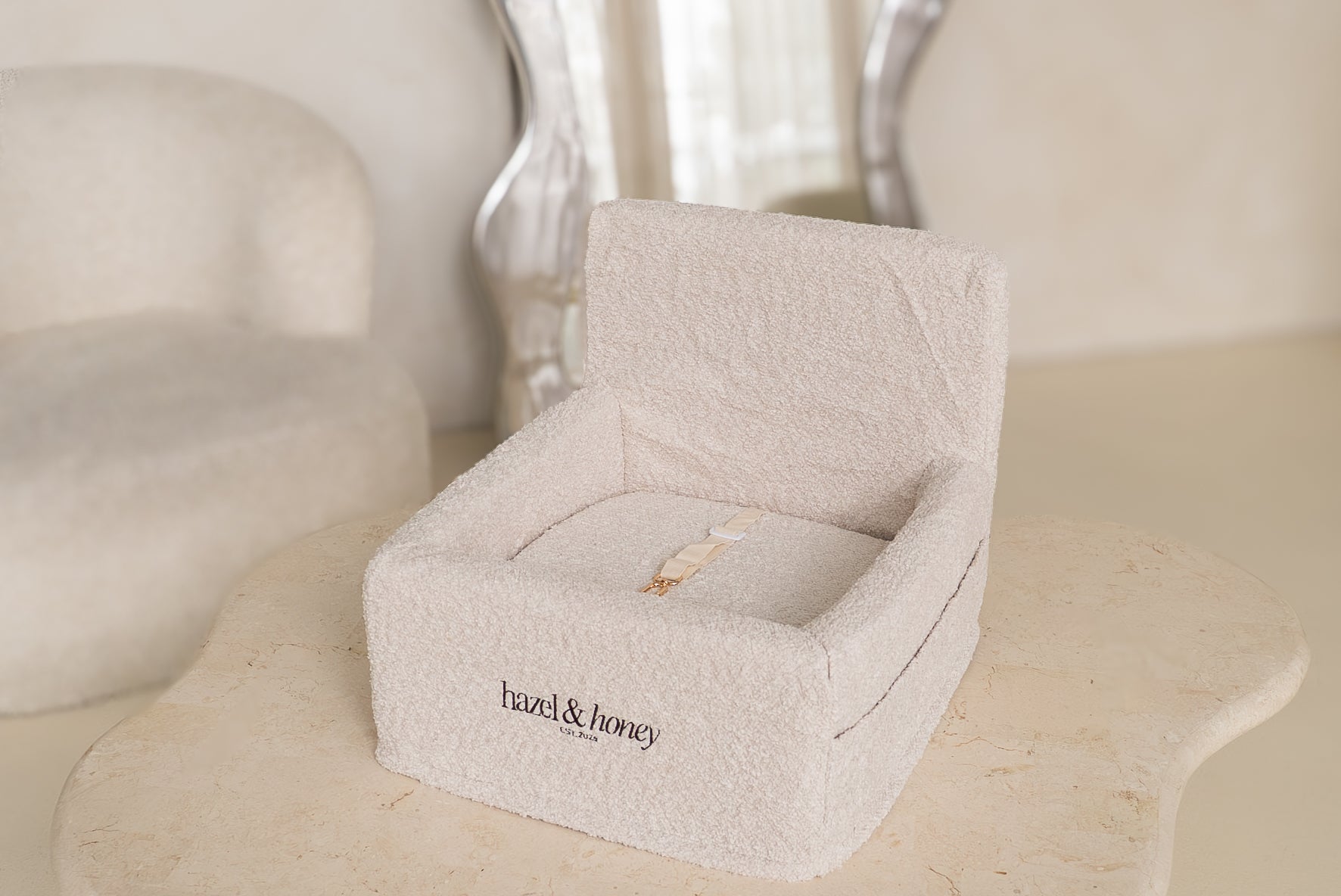 - Chic Bouclé Fabric, adding a touch of sophistication that enhances your car’s interior and fits seamlessly into your home.